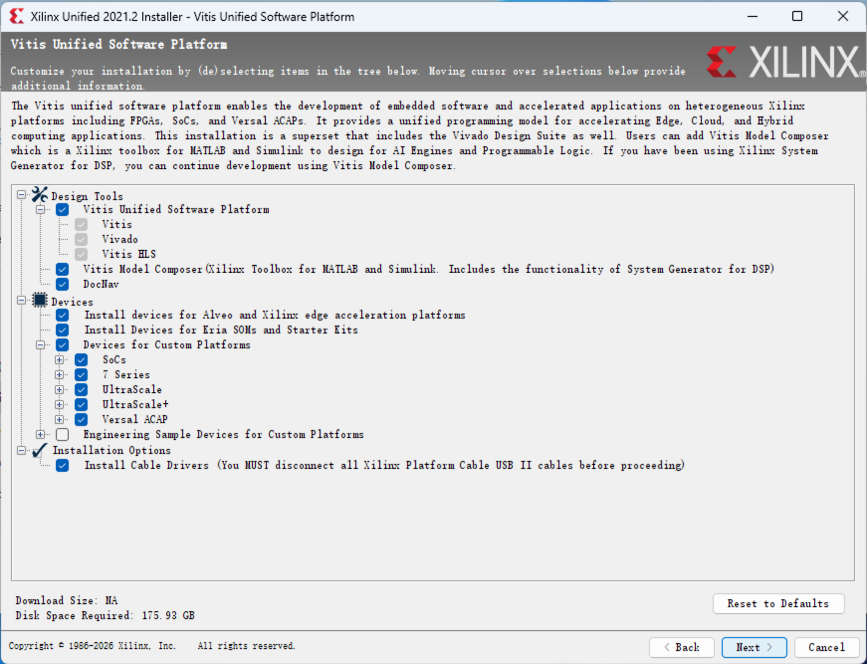 然后选择 “Vitis” ,他会同时安装 Vivado 和 嵌入式开发环境,这可以让我们在 FPGA 中使用软 MCU 核然后使用 Vitis 编程,点击 “Next”;